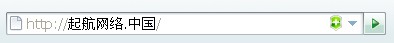 在IE7或IE8版本的瀏覽器地址欄中,直接輸入:起航網(wǎng)絡(luò).中國 即可訪問起航網(wǎng)絡(luò)公司網(wǎng)站。中文域名可識別全角和半角下的句號,輸入“.”時不用切換輸入法,輸入“起航網(wǎng)絡(luò)。中國”也是可以訪問的!